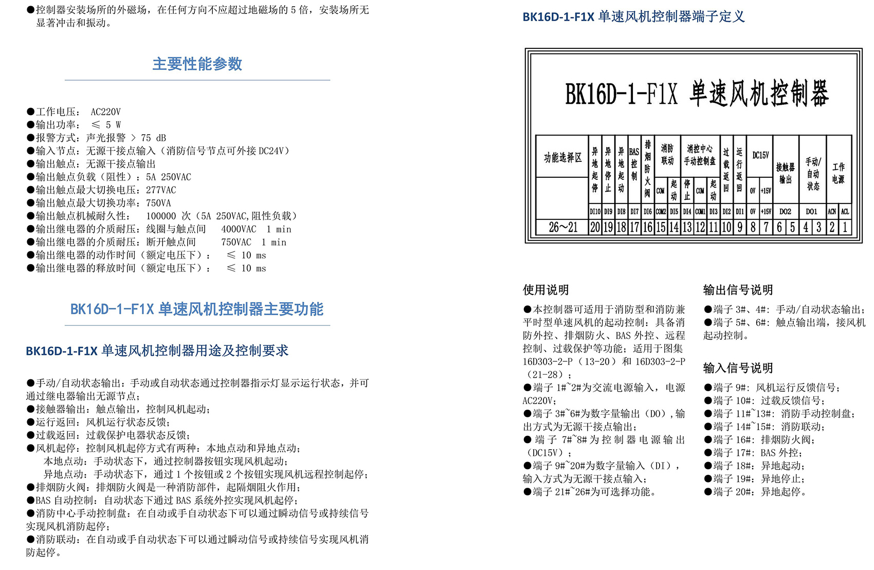 BK16D系列电动设备控制器是一款针对行业风机水泵控制箱设计的系列产品,产品满足国家建筑标准设计图集《16D303-2 常用风机控制电路图》及《16D303-3 常用水泵控制电路图》。本产品采用智能化手段,用逻辑计算代替了传统的按钮、指示灯、转换开关、中间继电器、时间继电器等器件,接线方便,简单快捷。相较于传统的接线方式,本产品可节约硬件投入、减少二次布线、节约工时,并具备故障率低,检修方便。